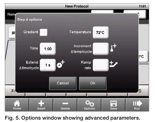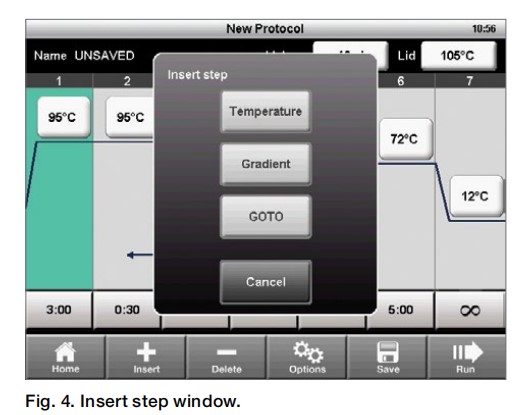 4)點(diǎn)擊“Insert”。屏幕將顯示要插入步驟(圖4)?!癟emperature”,“Gradient”,或GOTO。