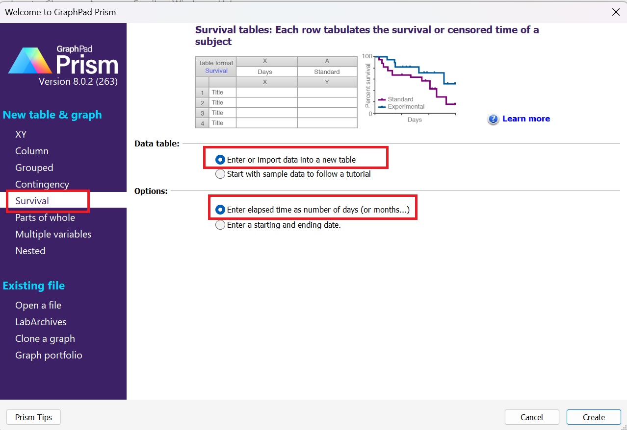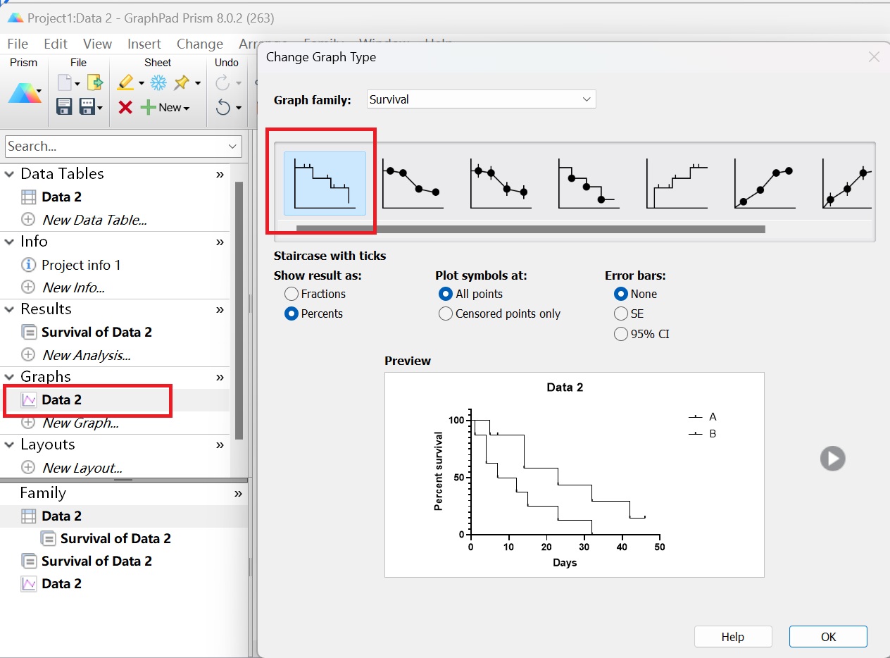 1.1打開Graphpad Prism軟件,圖表類型選擇“Survival”;