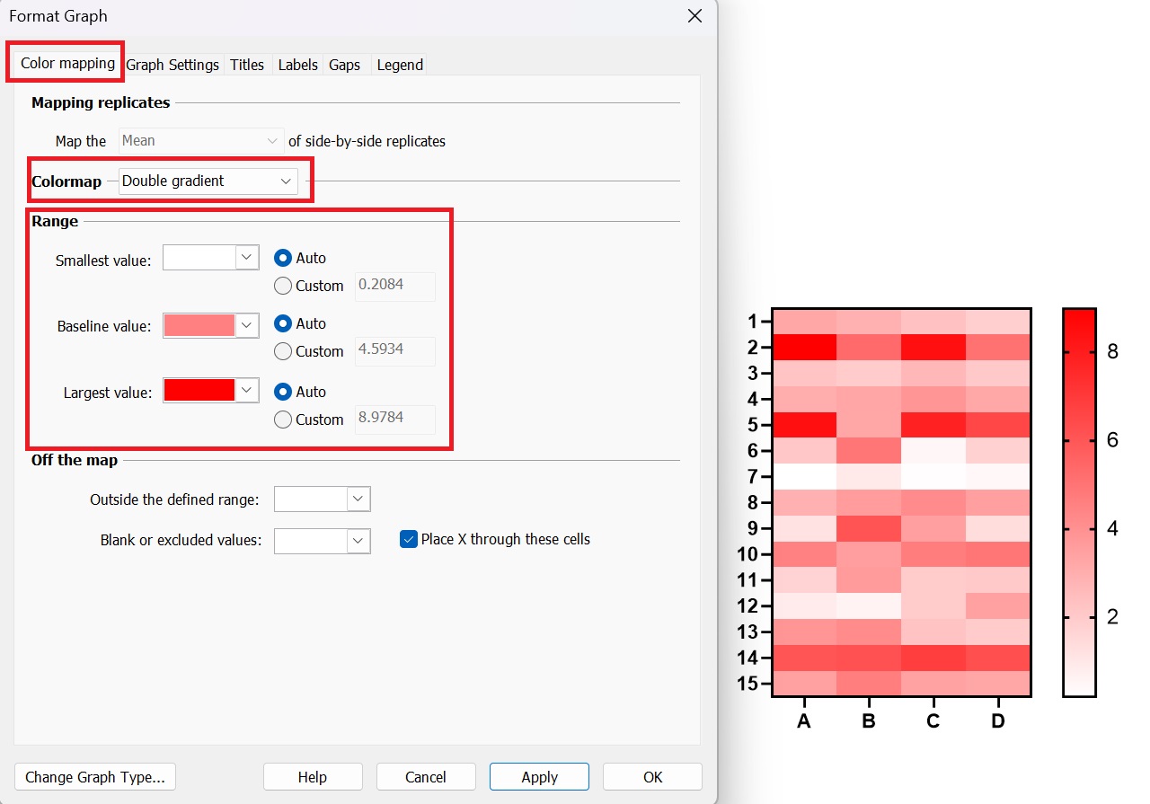 5 若需要對熱圖添加間隙,可打開Format Graph窗口,點擊Gaps選項,對“Vertical gaps”和“Horizontal gaps”進(jìn)行編輯,比如我們需要橫向和縱向都進(jìn)行分組,可以如圖5進(jìn)行設(shè)置。