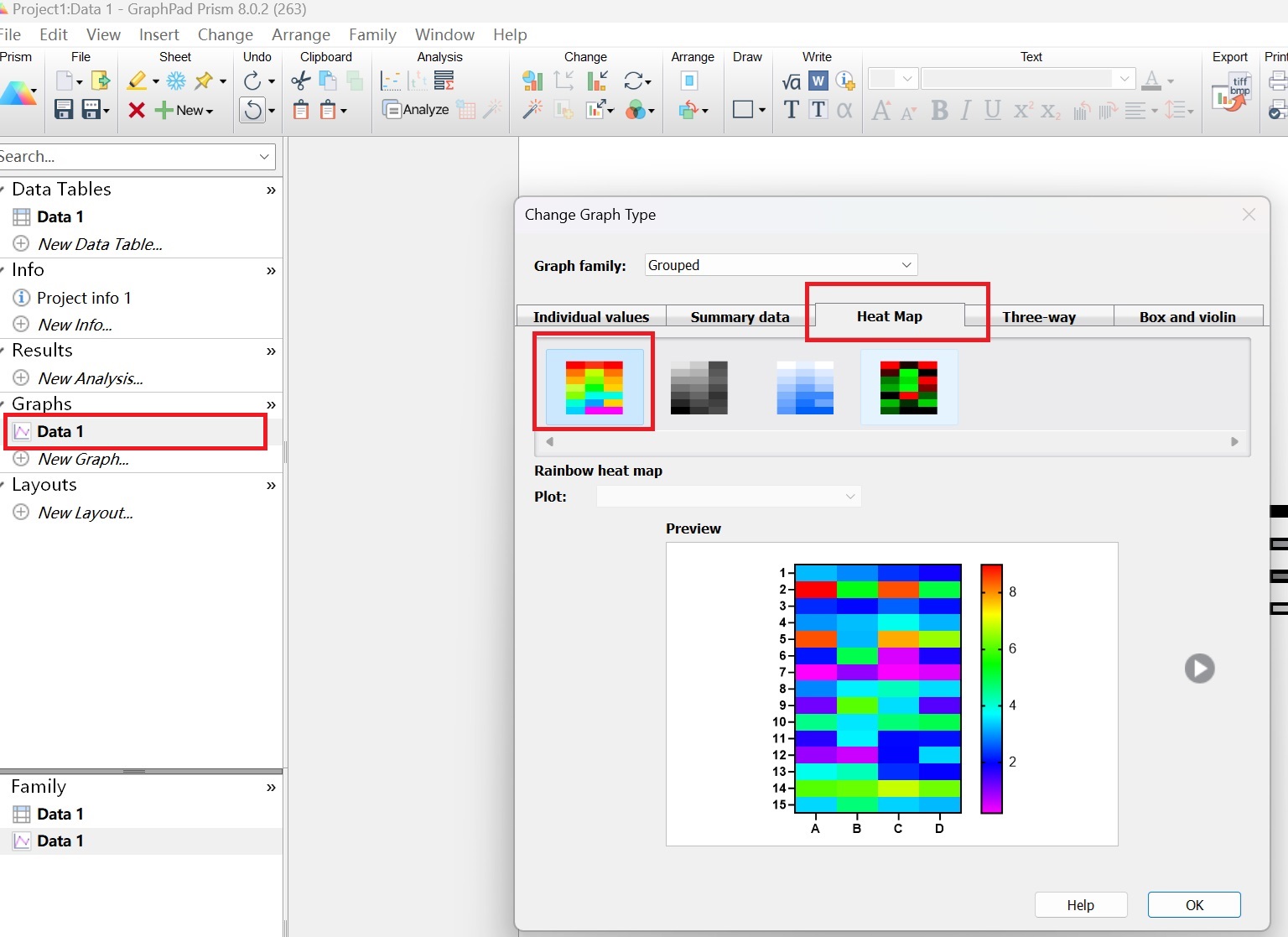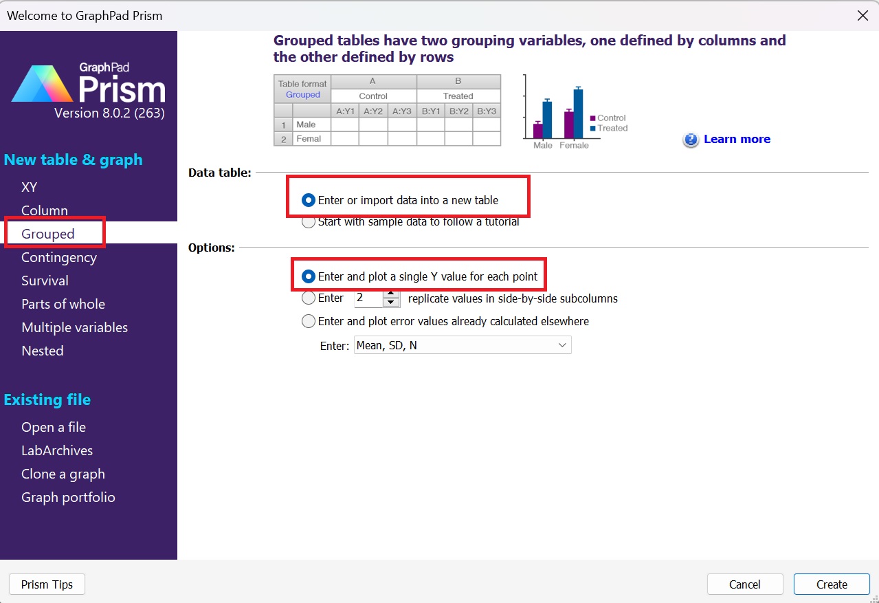 1.1 打開Graphpad Prism軟件,圖表類型選擇“Grouped”;