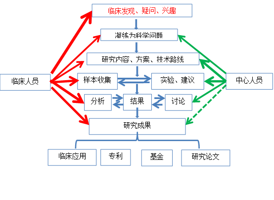 轉(zhuǎn)化醫(yī)學(xué)研究中心旨在為院內(nèi)科研人員提供研究場(chǎng)所、技術(shù)、方法等方面的支持,提供開放、創(chuàng)新、平等、互助的平臺(tái),促進(jìn)院內(nèi)科研交流、合作與發(fā)展。主要工作模式如下: