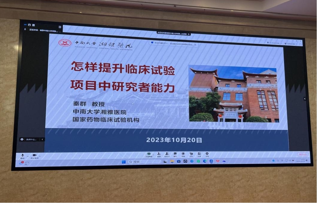 中南大學湘雅醫(yī)院藥物臨床試驗機構(gòu)辦公室秦群主任授課:“怎樣提升臨床試驗項目中研究者能力”