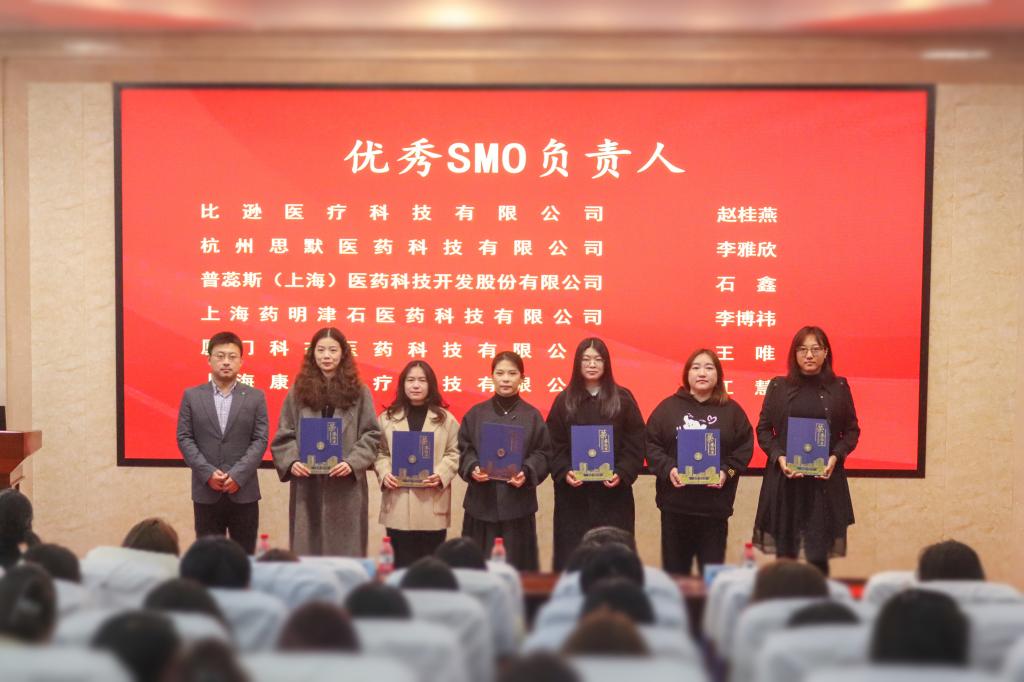 藥物臨床試驗(yàn)機(jī)構(gòu)辦公室前主任范明霞、羅茜副主任為優(yōu)秀SMO公司、優(yōu)秀SMO負(fù)責(zé)人、優(yōu)秀CRC頒獎(jiǎng)