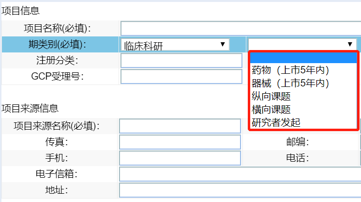 根據(jù)具體情況選擇下圖紅框所示的類別,存在干預(yù)性的臨床研究若涉及研究藥物或器械,且相應(yīng)藥物、器械在國內(nèi)上市未滿5年,請(qǐng)選擇藥物(上市5年內(nèi))或器械(上市5年內(nèi)),因?yàn)檫@兩類項(xiàng)目將由臨床試驗(yàn)倫理委員會(huì)進(jìn)行審查,其余的3類由科研倫理委員會(huì)進(jìn)行審查。請(qǐng)正確勾選,若勾選錯(cuò)誤后續(xù)需要重新勾選后重新按“送審資料清單”上傳資料(因?yàn)椴煌愋脱芯克枰峤坏馁Y料存在不同,若不確定,請(qǐng)致電0592-2137569或13959225281進(jìn)行確認(rèn)。)