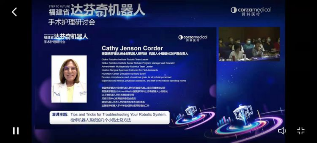 本次會議本次會議由廈門大學附屬第一醫(yī)院手術(shù)室護士長趙潔主持,會議邀請到美國佛羅里達機器人學院講師Cathy Corder女士,浙江省人民醫(yī)院喻曉芬護士長傾情授課,福建醫(yī)科大學附屬第一醫(yī)院洪發(fā)蘭老師、福建醫(yī)科大學附屬第二醫(yī)院周培萱老師擔任主持。會議緊扣“達芬奇”這個主題進行,邀請福建省內(nèi)達芬奇機器人手術(shù)小組組長及手術(shù)室護士長們大咖云集,互動討論,會議采取線上線下聯(lián)動舉行!來自全省的300多位護理同仁云端相聚,共享學術(shù)盛宴。