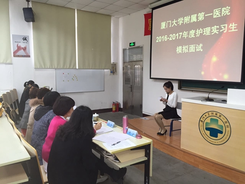 畢業(yè)在即,面臨的是求職就業(yè)壓力,隨著各大高校的擴(kuò)招,護(hù)理畢業(yè)生的數(shù)量急劇增加,就業(yè)問題也日益嚴(yán)峻。實(shí)習(xí)期間帶教老師明顯感受到實(shí)習(xí)同學(xué)渴求盡快融入臨床,從而找到自己滿意工作和位置的,然而往往很大一部分學(xué)生在邁出校園走進(jìn)社會(huì)的起跑線——應(yīng)聘上已經(jīng)落后其他人。如何在求職的道路上起跑?如何在求職人海中脫穎而出?將最真實(shí)的自己展現(xiàn)給用人單位,讓千里馬與伯樂不會(huì)失之交臂,為了應(yīng)對(duì)這一形勢(shì),我院護(hù)理部特舉辦模擬面試,旨在讓同學(xué)們通過這一活動(dòng),不用走進(jìn)社會(huì)就能真切感受到真實(shí)的面試氛圍,并根據(jù)社會(huì)的要求和自身的特長(zhǎng)合理規(guī)劃自己當(dāng)前的學(xué)習(xí)成才與將來職業(yè)發(fā)展。根據(jù)理論知識(shí)競(jìng)賽成績(jī)高低,實(shí)習(xí)同學(xué)以1:3進(jìn)入模擬面試,此次模擬面試完全依照我院招聘流程進(jìn)行,共有36名實(shí)習(xí)生進(jìn)入模擬面試,同時(shí)邀請(qǐng)?jiān)诿嬖嚪矫嬗休^豐富經(jīng)驗(yàn)的考官對(duì)同學(xué)進(jìn)行面試,經(jīng)過面試篩選共有10名同學(xué)進(jìn)入體檢環(huán)節(jié),最后由護(hù)理部毛俊嬛總帶教對(duì)此次知識(shí)競(jìng)賽及模擬面試進(jìn)行點(diǎn)評(píng),分析在面試過程中存在問題及在進(jìn)入面試時(shí)的注意事項(xiàng)。