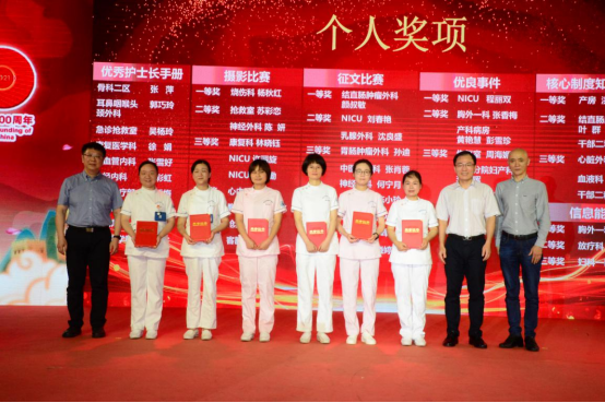 李衛(wèi)華黨委書記宣讀了護(hù)理先進(jìn)集體與個(gè)人表彰決定,由陳付紅主任助理主持頒獎(jiǎng)典禮,大會(huì)表彰了“優(yōu)秀護(hù)理團(tuán)隊(duì)”等7個(gè)團(tuán)體獎(jiǎng)項(xiàng)及“優(yōu)秀護(hù)士”、“最美護(hù)士”等13個(gè)個(gè)人獎(jiǎng)項(xiàng),由應(yīng)邀嘉賓、院領(lǐng)導(dǎo)及主任進(jìn)行頒獎(jiǎng),對(duì)60個(gè)團(tuán)隊(duì)及177名獲獎(jiǎng)?wù)哌M(jìn)行了表彰。這不僅是對(duì)過去一年在護(hù)理崗位上做出杰出貢獻(xiàn)的集體及個(gè)人的肯定,還激勵(lì)護(hù)理同仁們以受表彰護(hù)士為榜樣,繼續(xù)發(fā)揮專業(yè)特長(zhǎng),在各自崗位上體現(xiàn)自己的價(jià)值。