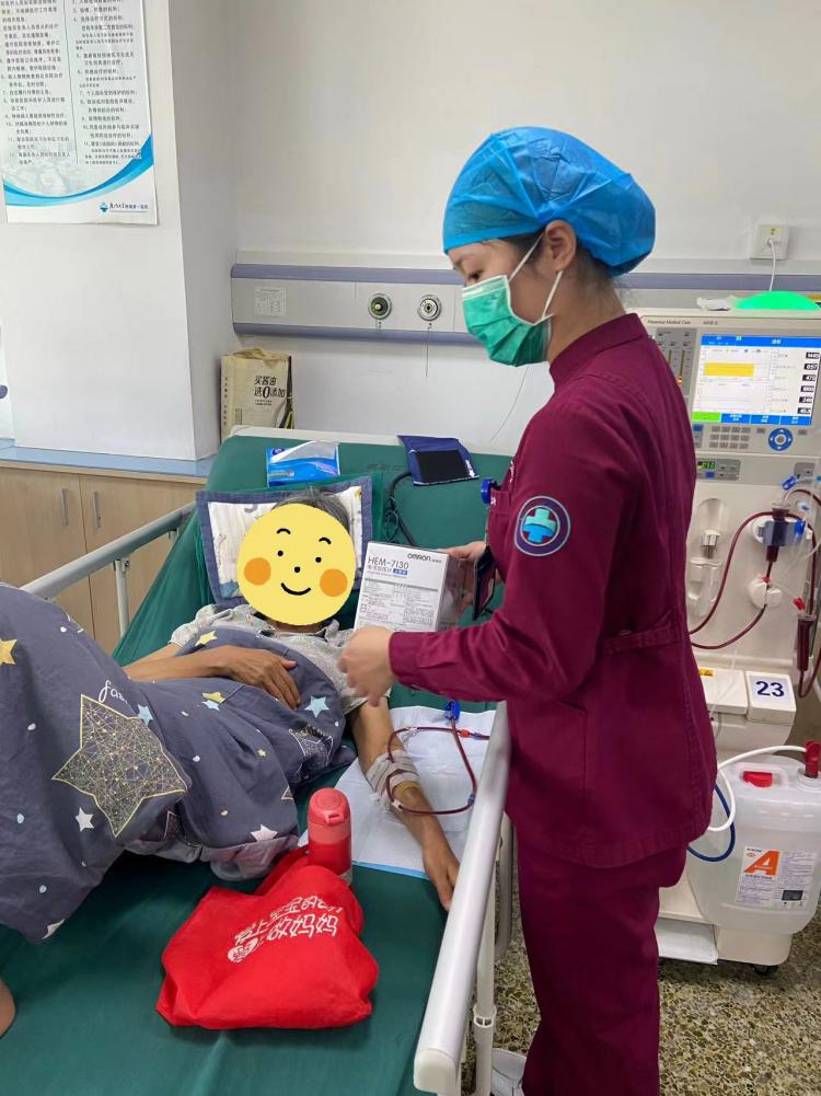 特殊的科室,特殊的群體,賦予了特殊的使命,無論春夏秋冬,無數(shù)個清晨,不到6點就亮起的希望之燈,只為了腎友們能夠繼續(xù)沐浴生命之光,讓生命與生命更近一些。透析治療時,有200毫升左右的血液在體外不停地循環(huán)著,以平均250ml/min的速度勻速運轉(zhuǎn)4小時,這就要求每一位血透室護士能夠精準無誤的操作,同時透析治療過程中,每一位血透室護士絲毫不敢怠慢,必須時刻監(jiān)護著患者的生命體征、血流量、靜脈壓等參數(shù)的變化同時警惕透析急、慢性并發(fā)癥的發(fā)生。