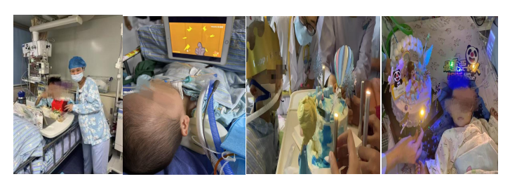 也許我們會(huì)因?yàn)槊β禑o(wú)暇顧及到寶寶們,但我們會(huì)用音樂(lè)、有趣的動(dòng)畫(huà)片豐富寶寶們?cè)赑ICU的住院生活。遇到特殊節(jié)日,春節(jié)、“六一”兒童節(jié)、國(guó)慶節(jié),我們會(huì)在病房中給寶寶帶來(lái)節(jié)日的溫暖。遇到寶寶過(guò)生日,我們會(huì)和家屬一起會(huì)給寶寶慶生,禮物、蛋糕、生日蠟燭(瞳孔筆)和生日歌,寶寶需要的我們都不會(huì)漏。
