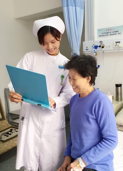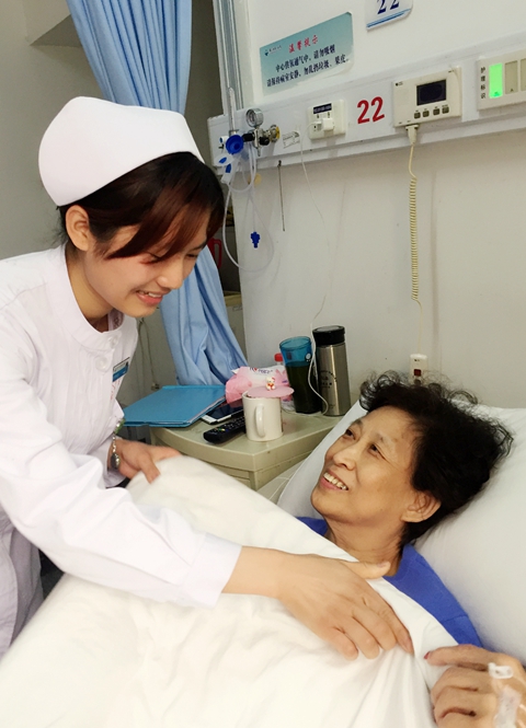 對(duì)于李阿姨這種長(zhǎng)期化療扎針的病人,她們對(duì)扎針已經(jīng)形成了一種恐懼感。但是她卻笑著對(duì)我說:“小洪,沒關(guān)系,我相信你的技術(shù),你就盡管扎,阿姨不怕痛,扎一針不行扎兩針,兩針不行三針,直到扎好為止?!甭牭竭@句話,我瞬間好感動(dòng),覺得這位病人好偉大。很順利,我一針就給她扎好了,阿姨不停的夸我打得好,還不痛。我那緊張的心也放松下來,對(duì)她笑了笑。這時(shí),隔壁床的病人郭阿姨笑著說: “小洪,我們這一間的病人都喜歡讓你打針,因?yàn)槟忝看蝸斫o我們打針總是笑嘻嘻的,臉上總是掛著笑容,還會(huì)不時(shí)地講笑話給我們聽,分散我們的注意力,你就像一個(gè)開心果,讓我們感覺很溫暖,很親切,以后阿姨都找你打針好嗎?”“好啊”,我靦腆的對(duì)她們笑了笑。