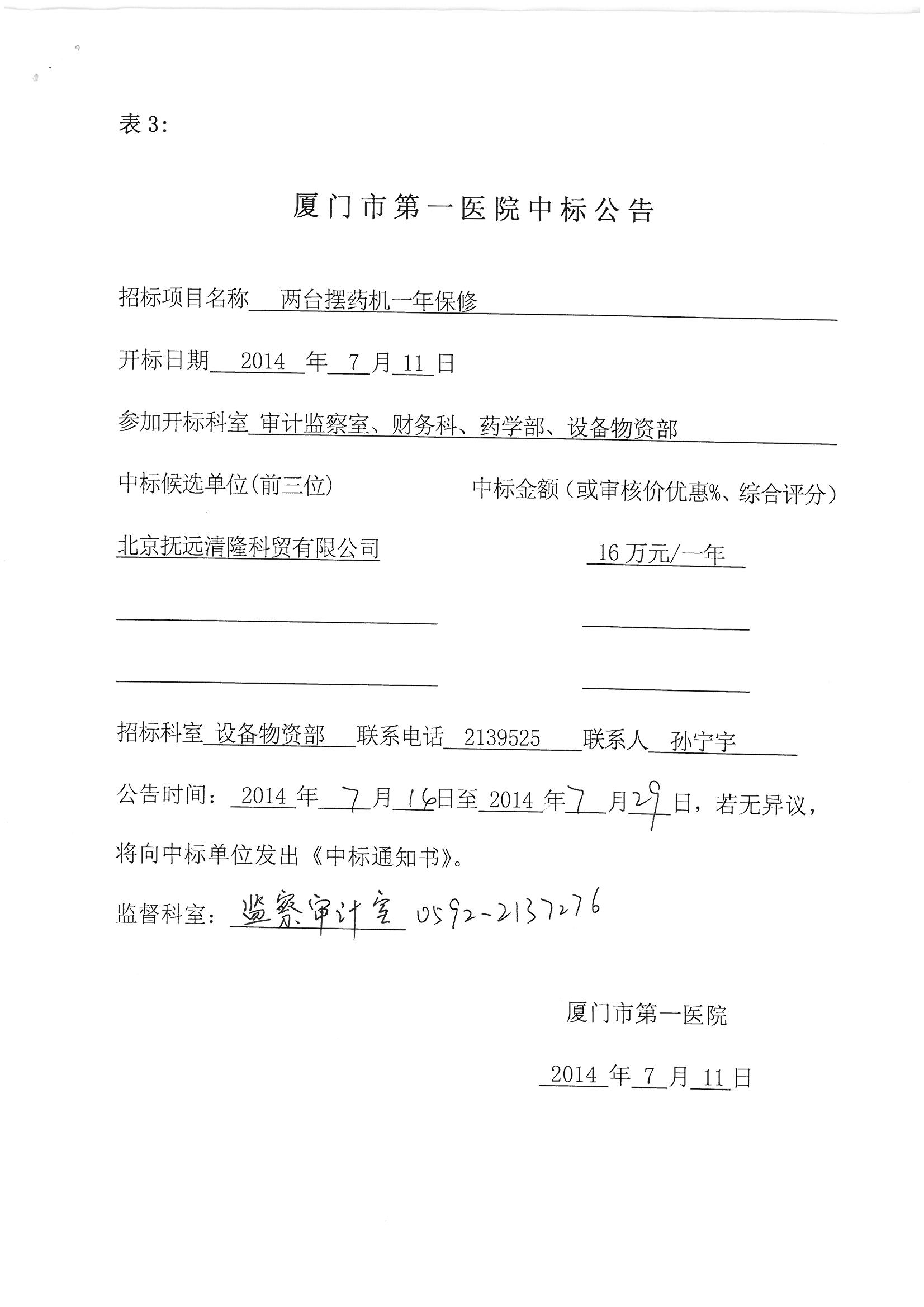上一條:廈門大學(xué)附屬第一醫(yī)院3#樓處置室、開水間改造工程中標(biāo)公告