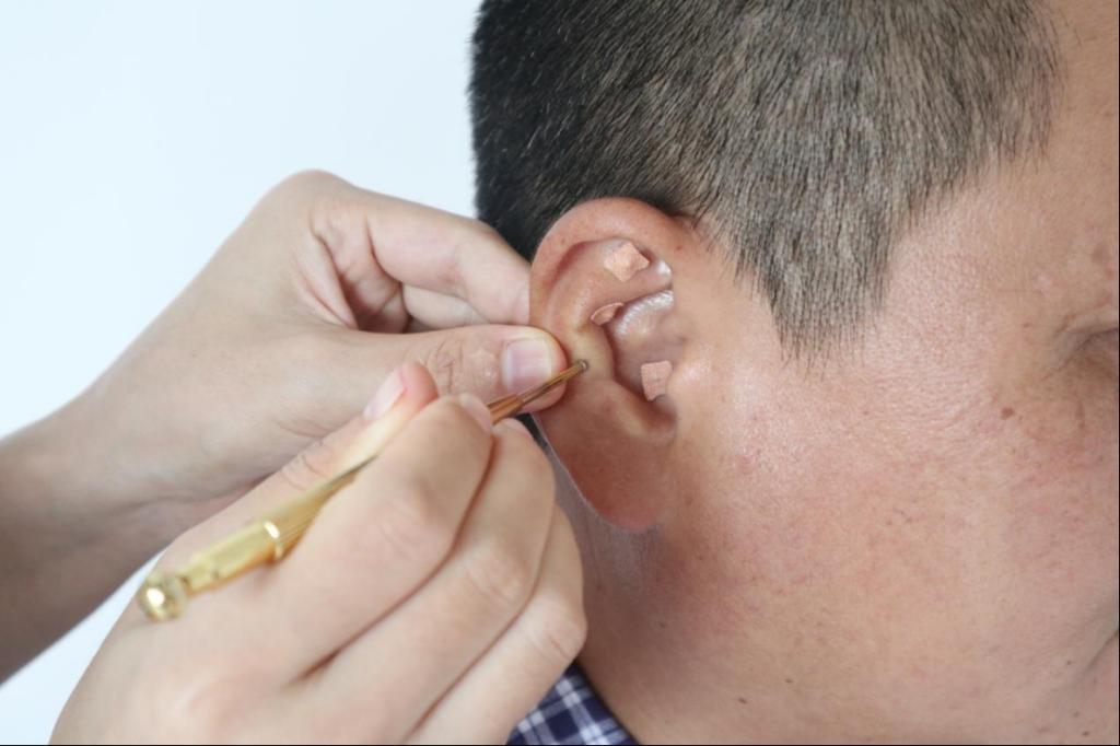 耳穴埋豆(耳針):是用膠布將藥豆(如王不留行、六神丸、磁珠、柏子仁等)粘貼于耳穴處,給予適度的揉、按、捏、壓,使其產(chǎn)生麻、脹、痛等刺激感應(yīng),刺激耳廓上的穴位或反應(yīng)點,以疏通經(jīng)絡(luò)、調(diào)和氣血、調(diào)節(jié)臟腑,從而達到防治疾病的一種方法。