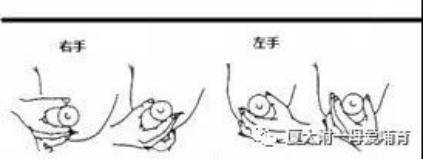 圖示為交替利用左右手?jǐn)D右側(cè)乳房的位置圖