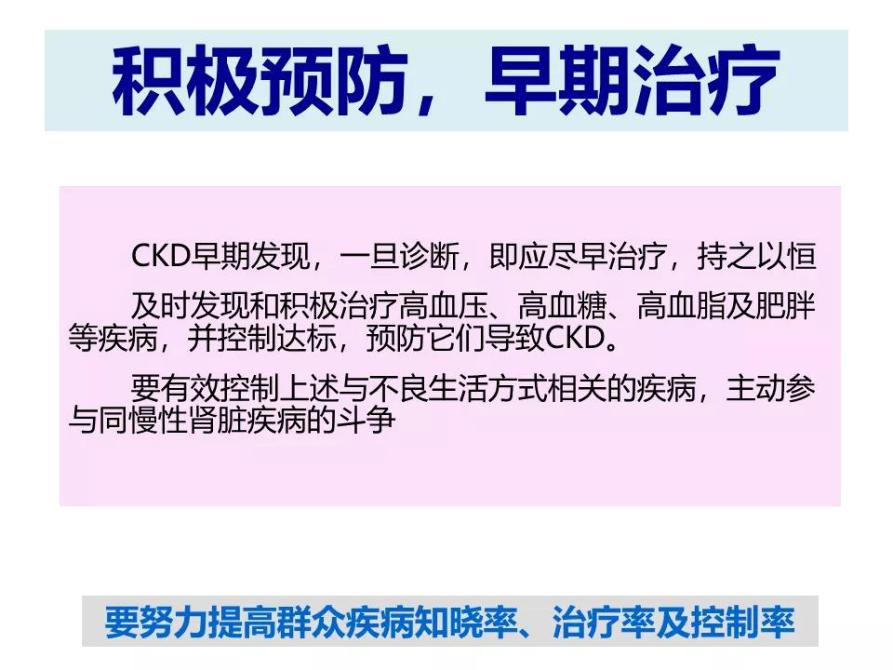 認真對待,有效地控制危險因素積極控制血糖、血壓、尿酸、血脂等危險因素,規(guī)范治療,能控制腎病進展,延緩腎功能惡化。