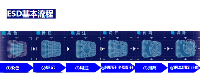 內(nèi)鏡黏膜下剝離術(shù)(ESD )是目前消化道早癌及癌前病變的微創(chuàng)治療方法之一,它是指在內(nèi)鏡下使用高頻電刀與專用器械,將病灶與其下方正常的黏膜下層逐步剝離,以達到將病灶完整切除的目的。具有操作時間短、并發(fā)癥少、術(shù)后恢復(fù)快、不改變消化道結(jié)構(gòu)等優(yōu)勢,且大大降低了治療費用及住院時間。
