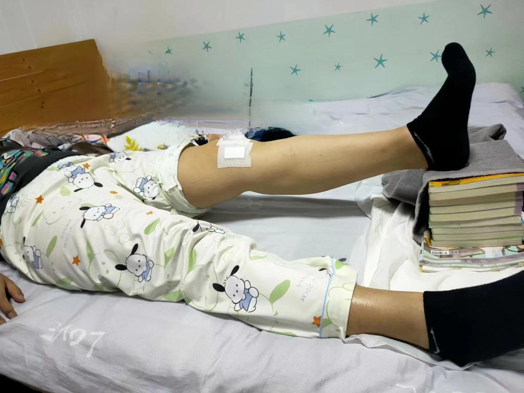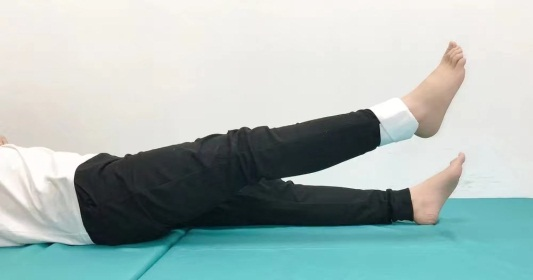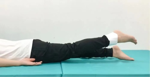·仰躺在床上,腳尖朝上,腳踝墊高約15厘米,膝關(guān)節(jié)懸空,患腿完全放松,維持30分鐘;