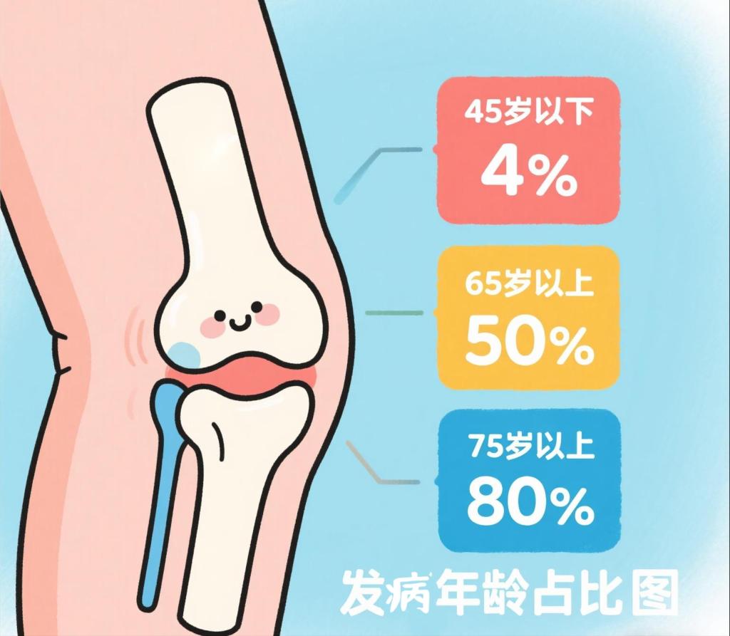膝關(guān)節(jié)的發(fā)病率隨年齡的增長(zhǎng)而增長(zhǎng)