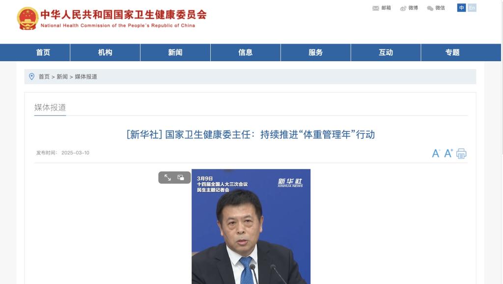 [新華社]國(guó)家衛(wèi)生健康委主任:持續(xù)推進(jìn)“體重管理年”行動(dòng)