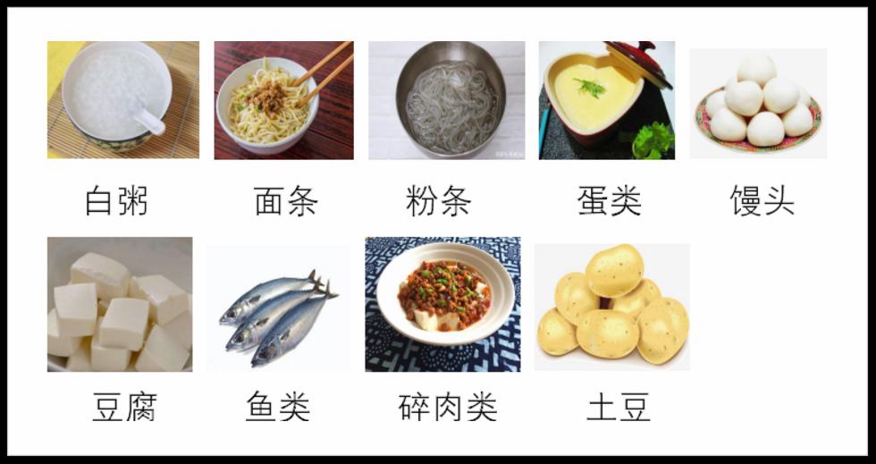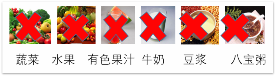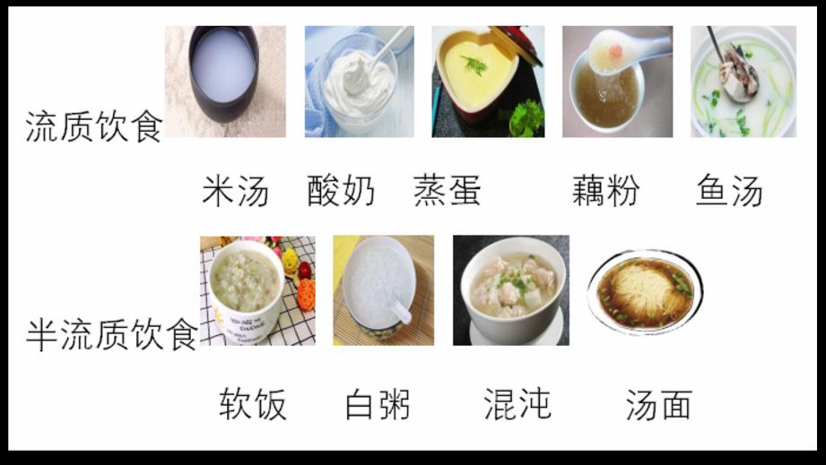 檢查前一天首選流質(zhì)飲食,或進(jìn)食少渣易消化的半流飲食。如圖。