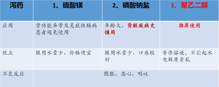 結(jié)腸鏡檢查是一種侵入性的檢查措施,要求患者的腸道內(nèi)沒(méi)有糞便殘留。腸道清潔不佳有可能導(dǎo)致息肉甚至癌前病變漏診。所以腸鏡檢查前需要一個(gè)合格的腸道準(zhǔn)備。通常情況下,檢查前服用瀉藥是最常用、最可靠的方法。常見(jiàn)的瀉藥有3類,分別是50%硫酸鎂溶液、磷酸鈉鹽溶液及聚乙二醇電解質(zhì)散。應(yīng)根據(jù)患者的身體情況選擇合適的瀉藥。