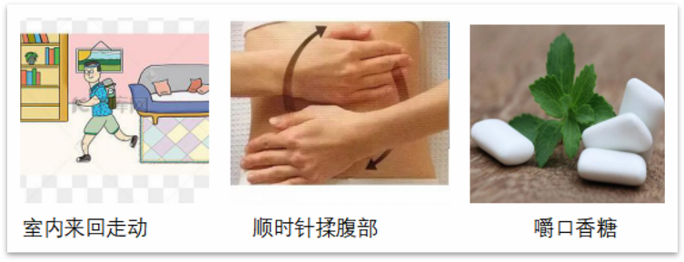 遵照瀉藥的服用說(shuō)明進(jìn)行服用后,通過(guò)適當(dāng)?shù)淖邉?dòng)和按摩腹部(如圖)可以促進(jìn)排便。如有惡心嘔吐癥狀也可以通過(guò)咀嚼口香糖或者含話梅等方法緩解。