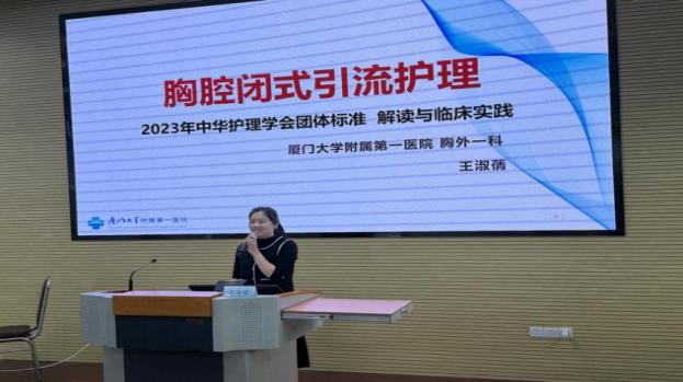 2023年12月1日,《胸外科管路安全護(hù)理新進(jìn)展學(xué)習(xí)班》在廈門大學(xué)附屬第一醫(yī)院如期舉辦。本次學(xué)習(xí)班由廈門大學(xué)附屬第一醫(yī)院主辦。會(huì)議邀請(qǐng)了廈門大學(xué)附屬中山醫(yī)院黃艷芳主管護(hù)師,廈門大學(xué)附屬第一醫(yī)院胸外科王淑蒨主管護(hù)師,廈門市第三醫(yī)院林麗玲,廈門大學(xué)附屬第一醫(yī)院胸外科林青護(hù)士長(zhǎng)進(jìn)行授課。廈門大學(xué)附屬第一醫(yī)院外科片區(qū)總長(zhǎng)楊銀玲主任護(hù)師、廈門大學(xué)附屬中山醫(yī)院胸外科劉亞黎護(hù)士長(zhǎng)、廈門市第三醫(yī)院胸心外科洪麗萍護(hù)士長(zhǎng),廈門市第五醫(yī)院胸心外科郭燕鴻護(hù)士長(zhǎng)以及廈門大學(xué)附屬中山醫(yī)院、復(fù)旦中山廈門醫(yī)院、陸軍第七十三集團(tuán)軍醫(yī)院、廈門醫(yī)學(xué)院附屬第二醫(yī)院、廈門大學(xué)附屬心血管醫(yī)院等兄弟醫(yī)院的護(hù)理同仁們近50人參會(huì)。