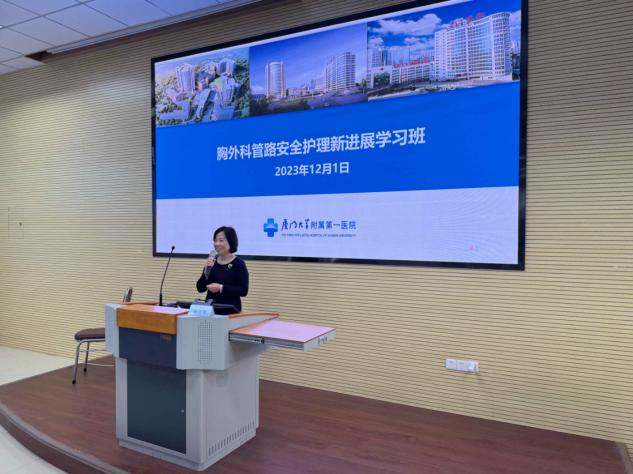 會(huì)上,廈門大學(xué)附屬第一醫(yī)院外科片區(qū)總長(zhǎng)楊銀玲主任護(hù)師。致辭中肯定了我院管道安全管理的工作開展情況,并對(duì)本次學(xué)習(xí)班寄予美好的期望和良好的祝福。