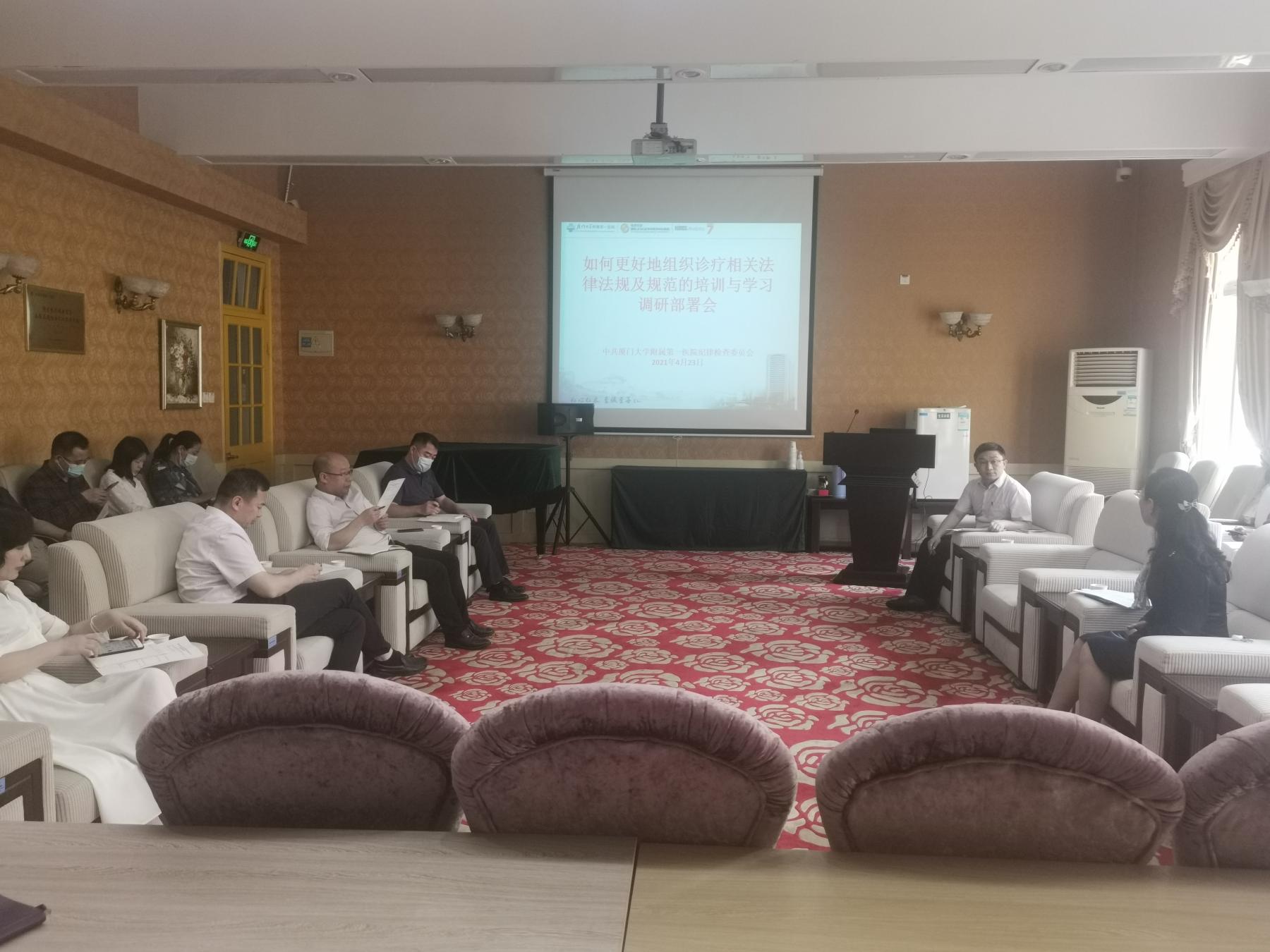 為切實落實黨史學(xué)習(xí)教育和“再學(xué)習(xí)、再調(diào)研、再落實”活動精神,2021年4月23日下午,廈門大學(xué)附屬第一醫(yī)院紀委召開“如何更好地組織醫(yī)院管理相關(guān)法律法規(guī)及規(guī)范的培訓(xùn)與學(xué)習(xí)”調(diào)研部署會。調(diào)研旨在進一步掌握醫(yī)院相關(guān)國家政策、法律法規(guī)和行業(yè)規(guī)范,深入了解學(xué)習(xí)與執(zhí)行過程中遇到的困難和問題,結(jié)合醫(yī)院管理和診療工作,組織開展集中輪訓(xùn)和專項培訓(xùn),推進落實各項政策,嚴格依法依規(guī)辦事,規(guī)范診療廉潔行醫(yī)。