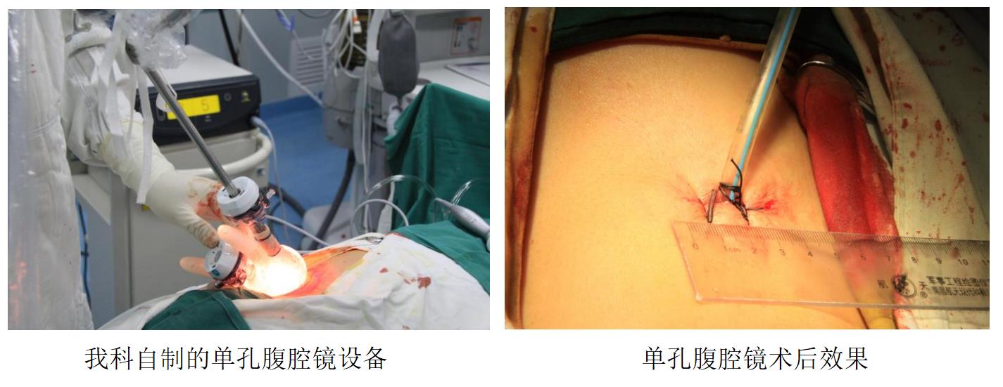 2011年我科率先在省內(nèi)開展單孔腹腔鏡手術(shù)。單孔腹腔鏡手術(shù)是國際最前沿的微創(chuàng)技術(shù),手術(shù)中手術(shù)器械及設(shè)備經(jīng)單孔進入腹腔,該技術(shù)快捷、損傷小、疤痕小。單孔腹腔鏡技術(shù)將傳統(tǒng)腹腔鏡手術(shù)由四孔、三孔、兩孔改為一孔后,與傳統(tǒng)腹腔鏡手術(shù)比較,更具有突出的微創(chuàng)性、安全性、經(jīng)濟性、美觀性、術(shù)后少疼痛等特點,真正體現(xiàn)了“微創(chuàng)”。
