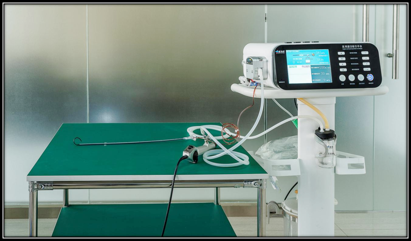 2020年,泌尿外科率先在省內(nèi)開(kāi)展智能控壓清石系統(tǒng)聯(lián)合輸尿管軟鏡治療復(fù)雜性腎結(jié)石。智能控壓清石系統(tǒng)是近年我國(guó)在輸尿管軟鏡基礎(chǔ)上發(fā)明的一種新型碎石輔助設(shè)備,因?yàn)槠洫?dú)特的負(fù)壓吸引灌注系統(tǒng),本系統(tǒng)與內(nèi)窺鏡、碎石設(shè)備組合,采用公司自主研發(fā)的控壓技術(shù)并數(shù)字化顯示,能精確控制微創(chuàng)腔內(nèi)取石需要的灌注流量、智能化控制腔內(nèi)壓力,避免出現(xiàn)腔內(nèi)高壓導(dǎo)致的嚴(yán)重并發(fā)癥,使手術(shù)更安全高效??梢赃吽槭呂鲚^大的結(jié)石碎片,提高結(jié)石清除率和降低殘石率,手術(shù)過(guò)程中保持腎盂低壓,全程手術(shù)視野清晰,集“碎石排石”于一體,補(bǔ)充了輸尿管軟鏡“只碎不排”的弊端。