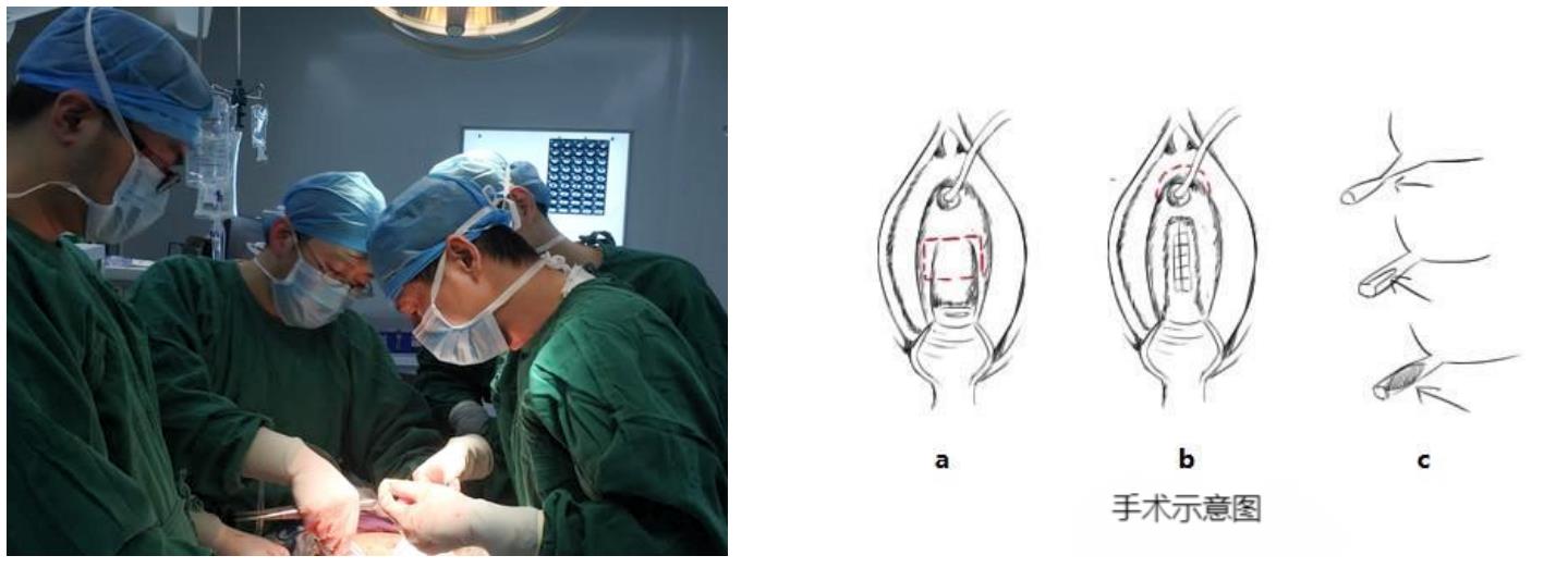 陳躍東主任在女性尿道修復(fù)重建術(shù)中及其國(guó)內(nèi)首創(chuàng)的背側(cè)入路尿道重建術(shù)示意圖
