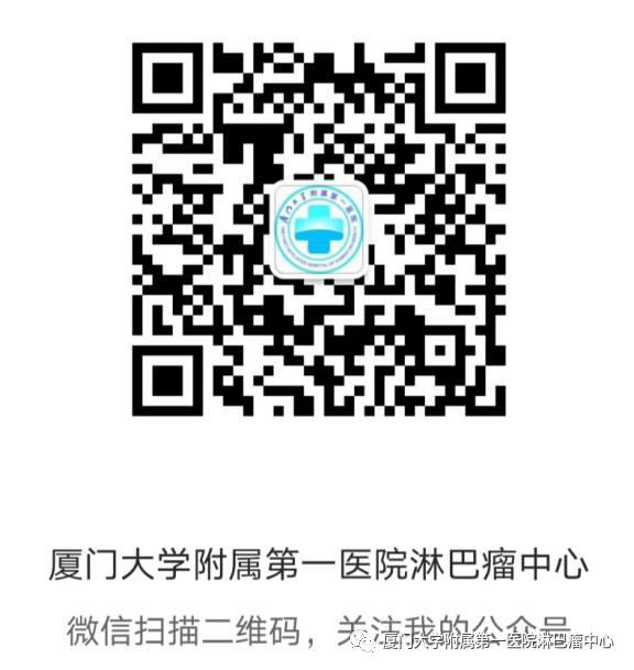廈門大學附屬第一醫(yī)院淋巴瘤中心微信公眾號是面向社會各界朋友的信息服務(wù)平臺,為民眾提供淋巴瘤科普知識宣教,名醫(yī)專家介紹,科室文化展示,淋巴瘤相關(guān)學術(shù)進展、疑難病例討論分析及淋巴瘤護理常識。歡迎掃描下方二維碼關(guān)注!