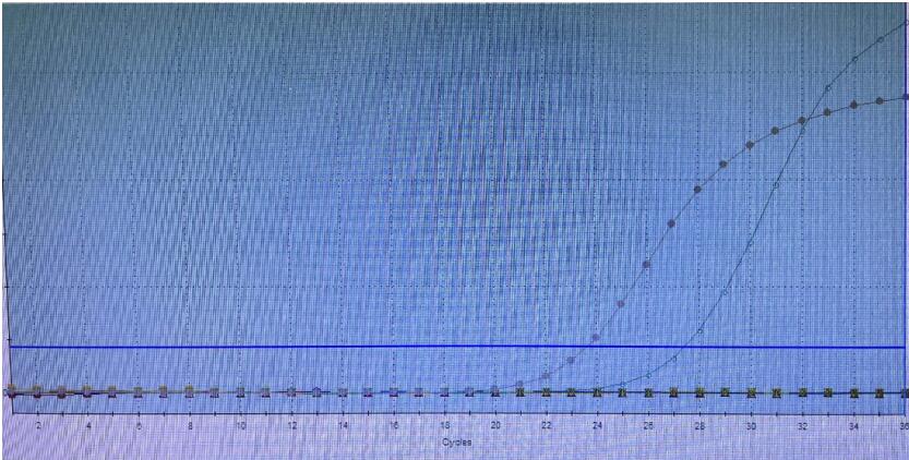 2、肺九聯(lián)-PCR技術(shù)融合類檢測(cè)是通過(guò)在融合位點(diǎn)兩側(cè)設(shè)計(jì)特異性引物和探針,并結(jié)合一步法RT-PCR方法對(duì)樣本RNA中ALK和ROS1進(jìn)行檢測(cè)。突變類檢測(cè)是通過(guò)ADx-ARMS技術(shù)對(duì)樣本DNA中基因突變進(jìn)行檢測(cè),ADx-ARMS技術(shù)是針對(duì)突變位點(diǎn)設(shè)計(jì)特異的突變檢測(cè)引物,PCR擴(kuò)增時(shí),由于該引物3'末端的堿基與突變型模板完全配對(duì),引物延伸并擴(kuò)增出突變模板,而野生型模板由于不能完全配對(duì),引物延伸被阻斷,野生型模板擴(kuò)增被抑制,從而實(shí)現(xiàn)基于突變的檢測(cè)。
