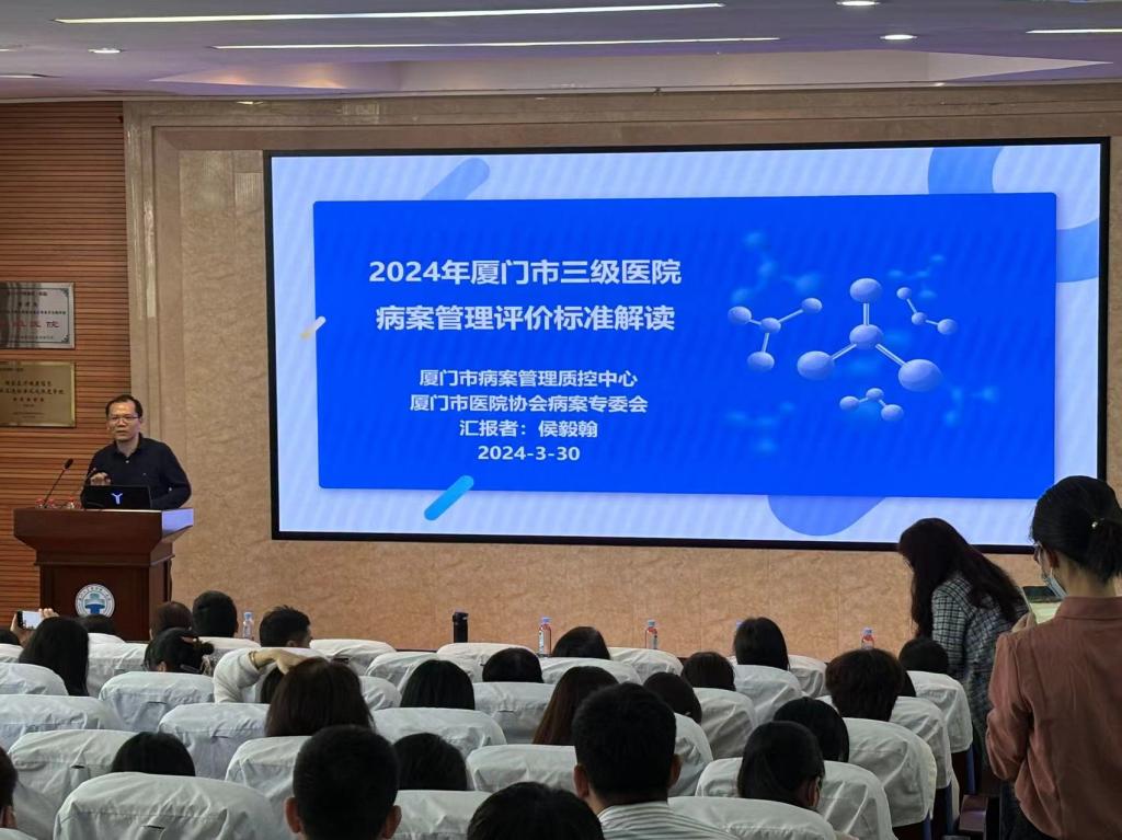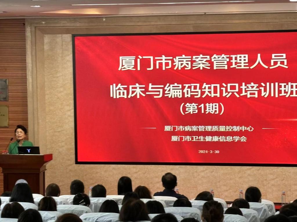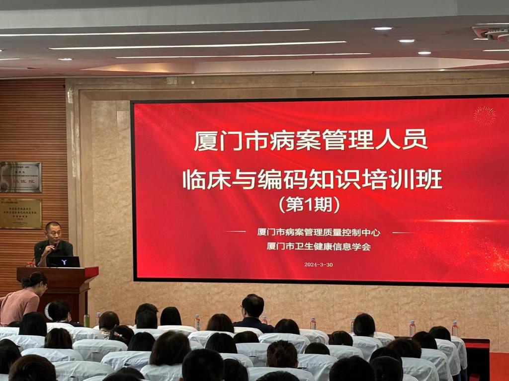 2024年3月30日上午,由廈門(mén)市病案管理質(zhì)量控制中心、廈門(mén)市醫(yī)院協(xié)會(huì)病案專(zhuān)委會(huì)、廈門(mén)市衛(wèi)生健康信息學(xué)會(huì)和廈門(mén)大學(xué)附屬第一醫(yī)院聯(lián)合舉辦的“廈門(mén)市病案管理人員臨床與編碼知識(shí)培訓(xùn)班(第1期)”在廈門(mén)大學(xué)附屬第一醫(yī)院順利召開(kāi)。本次培訓(xùn)班共吸引來(lái)自廈門(mén)公立、民營(yíng)醫(yī)療機(jī)構(gòu),以及漳州市醫(yī)院等病案管理同道近200人與會(huì)。