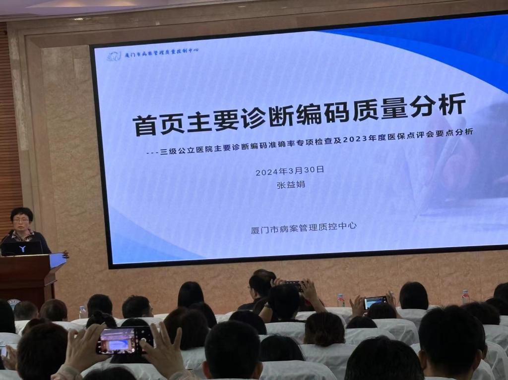 廈門(mén)市病案管理質(zhì)控中心副主任委員、廈門(mén)市醫(yī)保編碼審核資深專(zhuān)家張益娟主任針對(duì)2022和2023年度全市14家三級(jí)公立醫(yī)院病案首頁(yè)主要診斷編碼正確率隨機(jī)雙盲抽查中發(fā)現(xiàn)的共性問(wèn)題,并結(jié)合醫(yī)保DIP支付方式改革中的病種分組,作了“首頁(yè)主要診斷編碼質(zhì)量分析”的專(zhuān)題講座,明確妊娠合并并發(fā)癥、腫瘤介入治療、阻塞性睡眠呼吸暫停綜合征、癲癇患者入院腦電圖檢查等情況下的主要診斷選擇原則,講解痔瘡、慢性鼻竇炎等疾病的DIP成組過(guò)程,進(jìn)一步提升了全市病案首頁(yè)編碼的規(guī)范性和一致性。